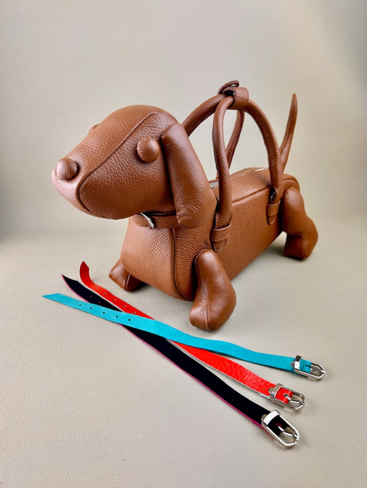 Сумка оснащена внутренними карманами. Мягкая фактурная кожа создает теплое настроение . Нос и глаза собаки также выполнены из натуральной кожи. Идеально подойдет для повседневного использования, а также будет прекрасным аксессуаром для яркого образа.