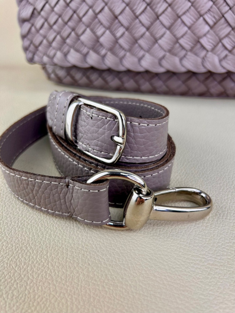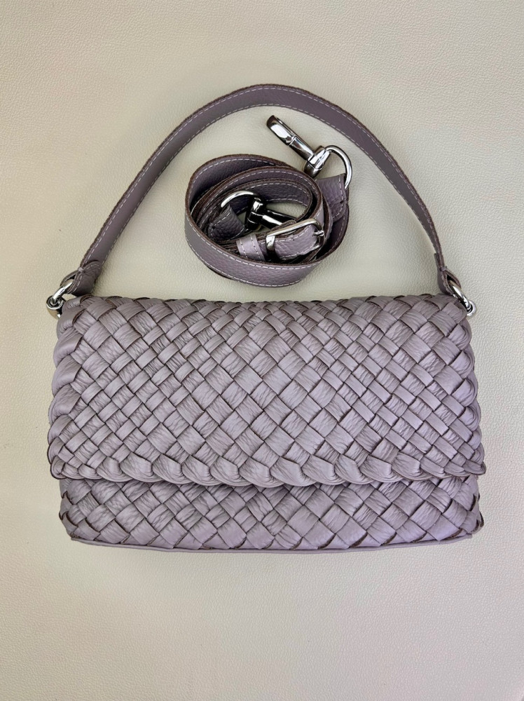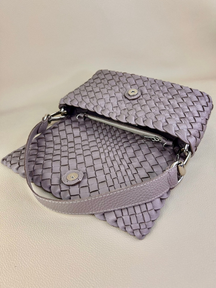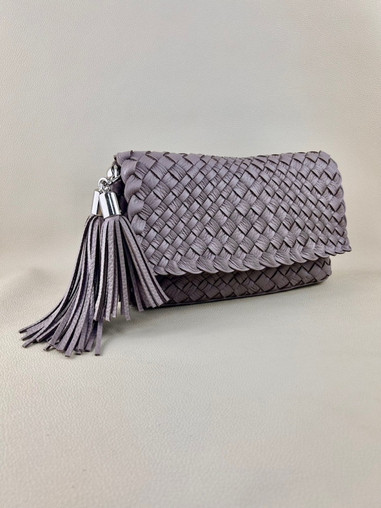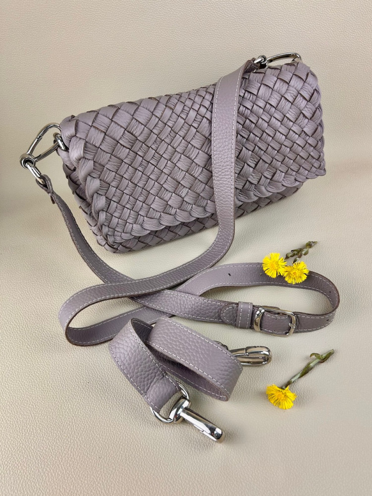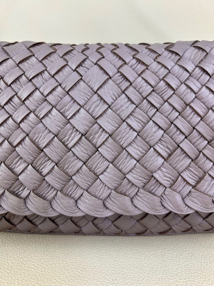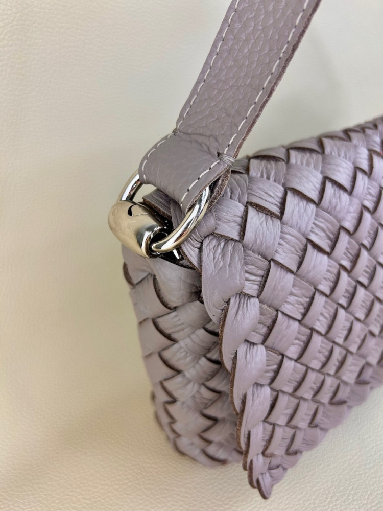 Клатч плетеный Emma из натуральной мягкой итальянской кожи в сложном и нежном оттенке серого цвета. Модель выполнена в технике плетения Intrecciato (интречиато). Плетение выполнено полностью вручную на нашем собственном производстве в Санкт-Петербурге. На этой модели используются полосы разной ширины, это создает еще более богатую фактуру.