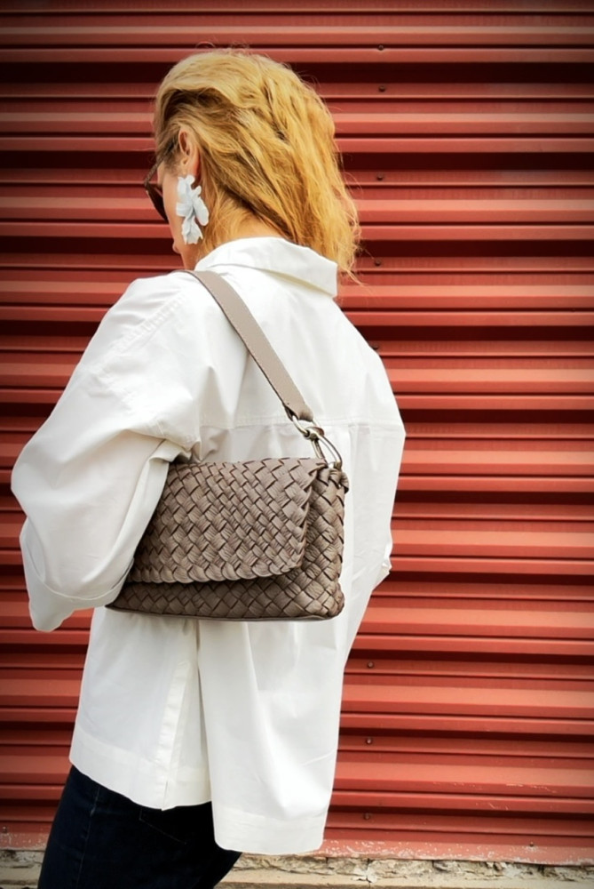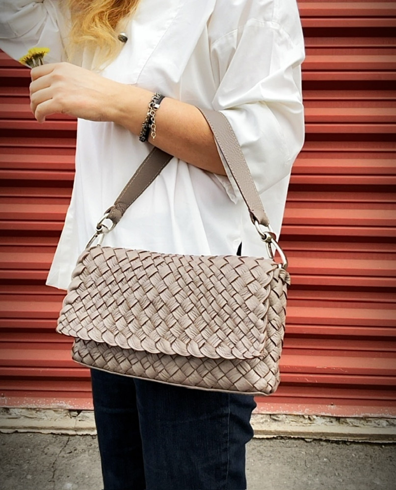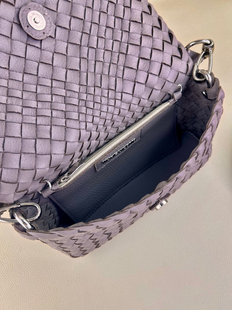 Особенность «intrecciato» заключается в переплетении тонких кожаных лент, которые образуют ромбовый узор. Таким образом, подобная техника придает прочность изделиям без потери гибкости. В этом изделии использована двухстороняя кожа, это значит с обратной стороны, внутри сумки - вы не увидите бахтормы. Внутри сумка выглядит так-же аккуратно и привлекательно, как и снаружи.