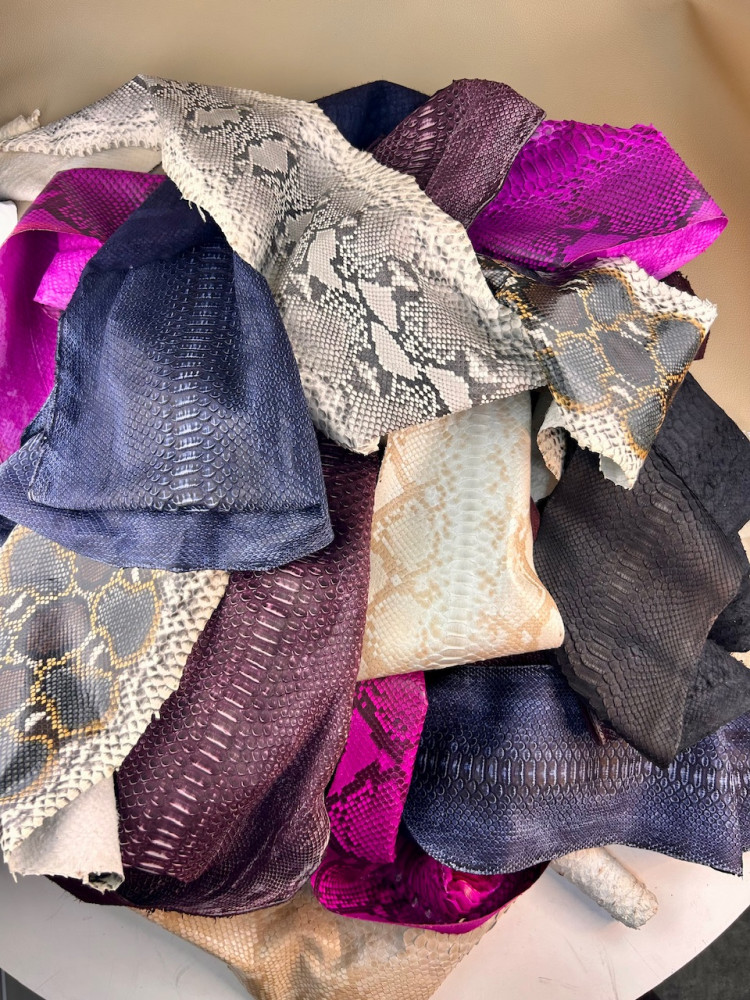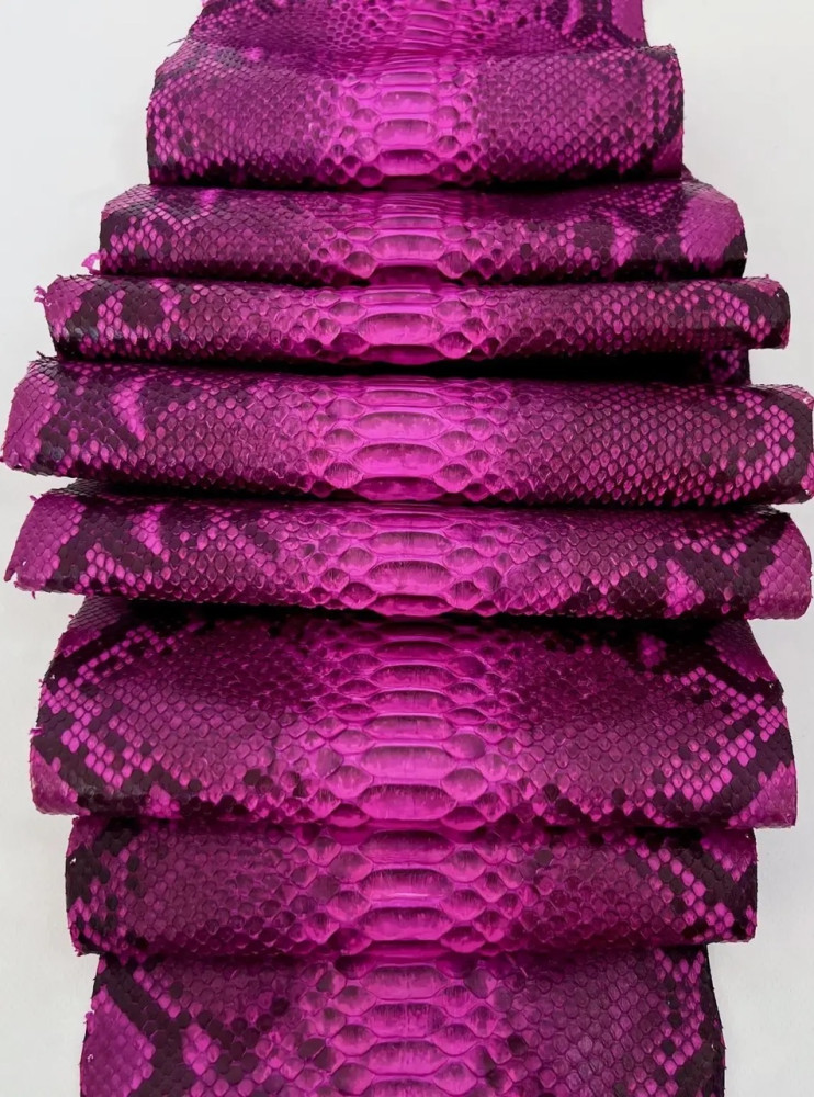 Чтобы нам вместе продумать и создать вашу индивидуальную сумку, сначала вы выбираете цвет питона. На фото представлены несколько расцветок. Потрясающие цвета и качество. Это шкуры натурального питона.