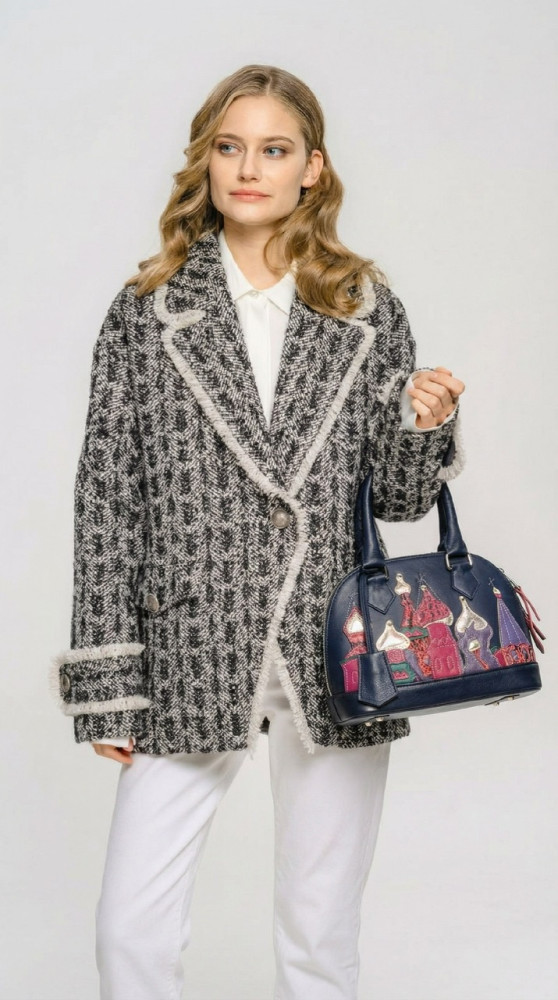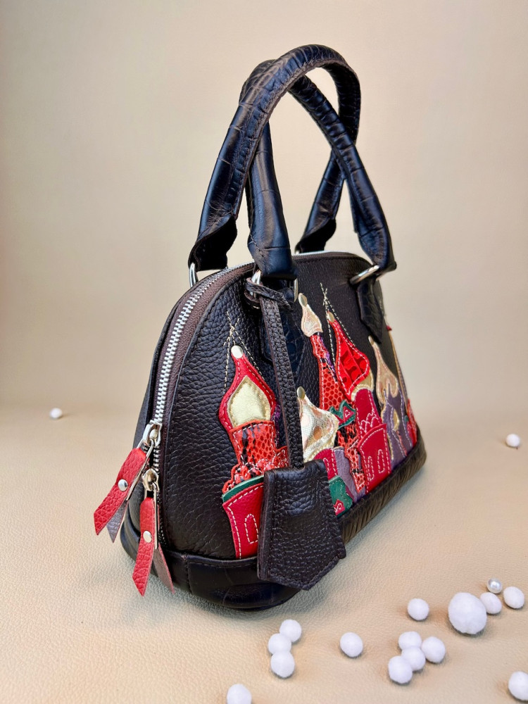 Сумка со знаковым российским памятником. Роскошная аппликация из разнообразных видов кожи - с золотыми куполами собора Василия Блаженного в Москве украшает это изделие. Для тех кому не хватает национального достояния.