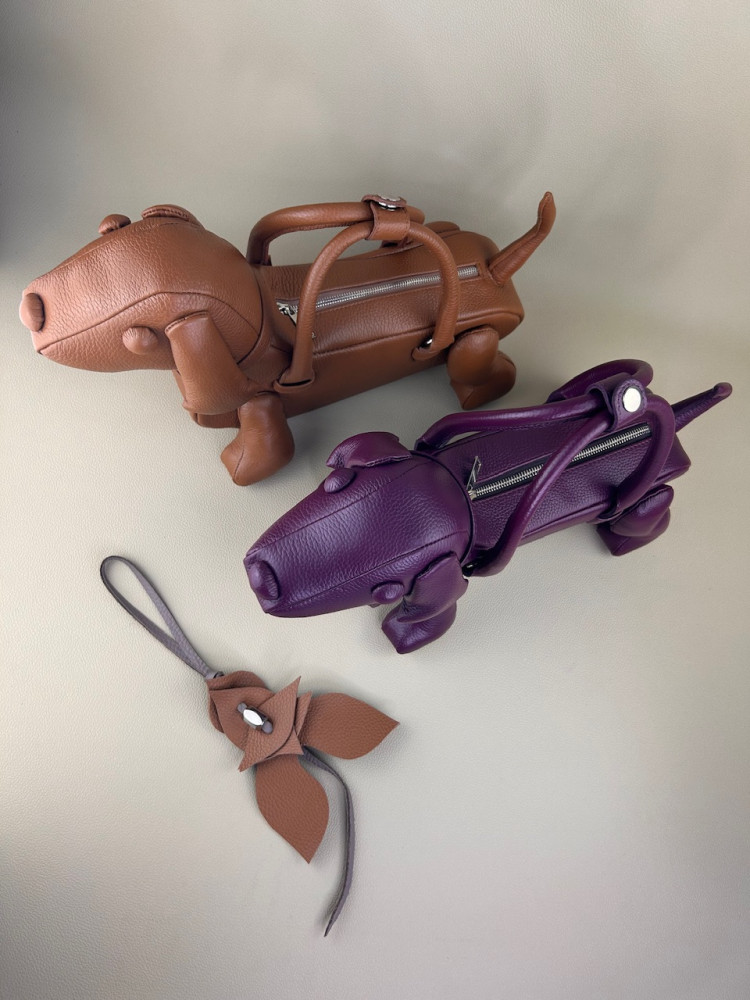 Сумочка в виде собаки выполнена из натуральной кожи и полностью повторяет форму таксы. Объемные ушки, лапы и хвост придают сумочке необычный вид и привлекают внимание окружающих. В комплекте длинный съемный ремень и ошейник в тон к основной коже. Но при желании можно разнообразить цветовую гамму ошейника, вы можете выбрать и обсудить цвет кожи при заказе. Можно дополнительно заказать несколько ошейников разных цветов.