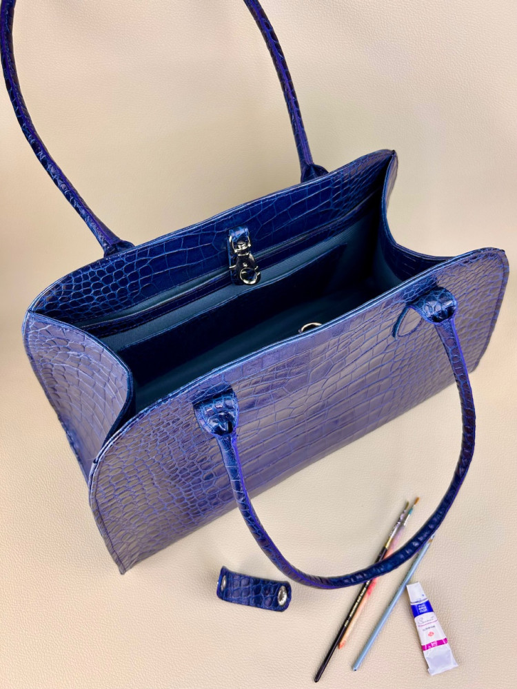 Базовая повседневная сумка-тоут для документов и бумаг из натуральной кожи. Сумка Medium из натуральной кожи с фактурой крокодила – это элегантный аксессуар, который станет незаменимым помощником для современной женщины. Изготовлена из высококачественной итальянской натуральной кожи, она обладает прочностью и долговечностью.