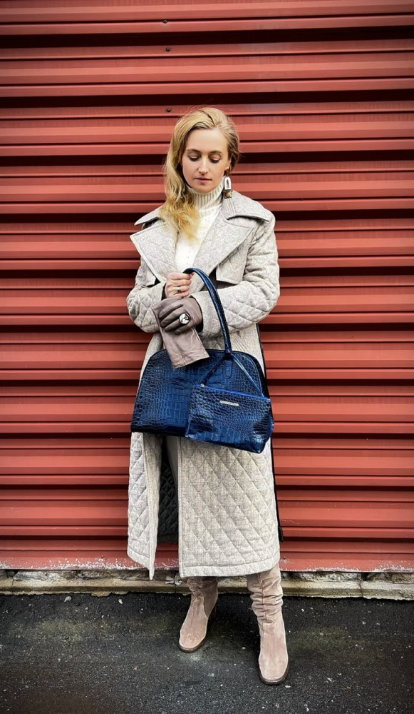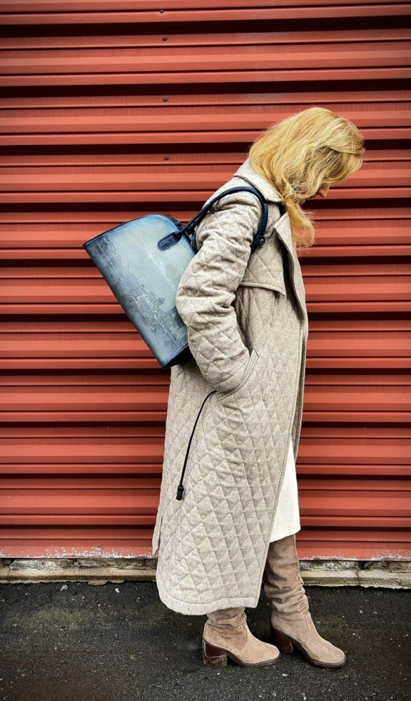 Насыщенный синий кобальтовый оттенок кожи в сочетании с холодным питерским вайбом придает изделию строгий и многослойный характер. Богатая фактура кожи создает игру света и тени. Кожа плотная, максимально практичная. Влага, снег – не оставляет следов.